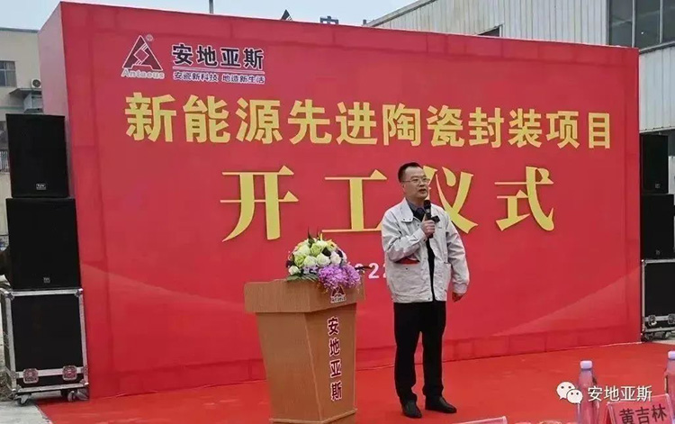 2022年11月20日早上,萬(wàn)里無(wú)云,溫暖的陽(yáng)光灑滿大地,公司新能源先進(jìn)陶瓷封裝項(xiàng)目工地上彩旗飄飄、火紅的氣球隨風(fēng)飄揚(yáng)。主席臺(tái)上“新能源先進(jìn)陶瓷封裝項(xiàng)目開工儀式”幾個(gè)大字分外醒目,今天是安地人高興的日子,我們將在這里舉行新廠房建設(shè)開工儀式。